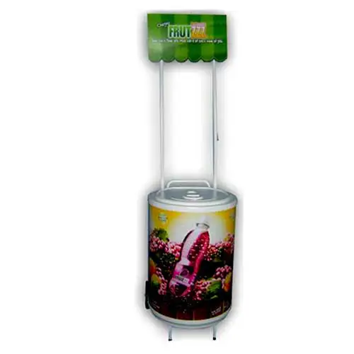 Cooler Carrinho Grande 75 latas com Testeira. Possui rodizios, cuba moldada em poliestileno (PSAI) de alto impacto. Isolante térmico de isopor prensado com 70 mm de espessura. Tubo externo em polietileno (PEAD), revestido em adesivo com impressão digital de alta resolução em 360°Impressão com cores a traço/chapadas ou em cromia tipo foto imagem.