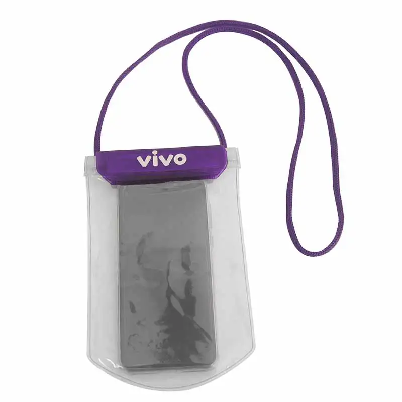 Porta Celular personalizado feito em alclear com fechamento em velcro e cordão