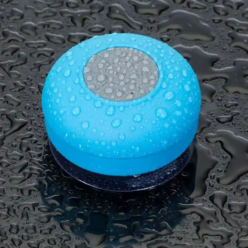 Caixa de som redonda para a hora do banho, a prova d''água, recarregável, com grude para parede e vidros, com Bluetooth, atende ligações.