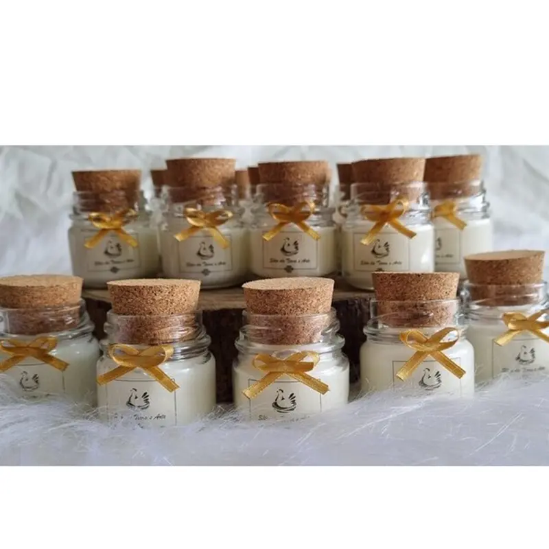 Vela em frasco de vidro com tampa rolha para lembrancinhas ideal para personalizar, estão feitas com cera de coco, livre de parafina e essências premium.