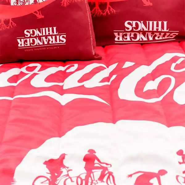 Edredom solteiro, tecido superior de poliester personalizado total, tecido inferior 100% algodão, enchimento 100% poliester, fto: 1,45 x 2m. Pode incluir almofada, se desejar.