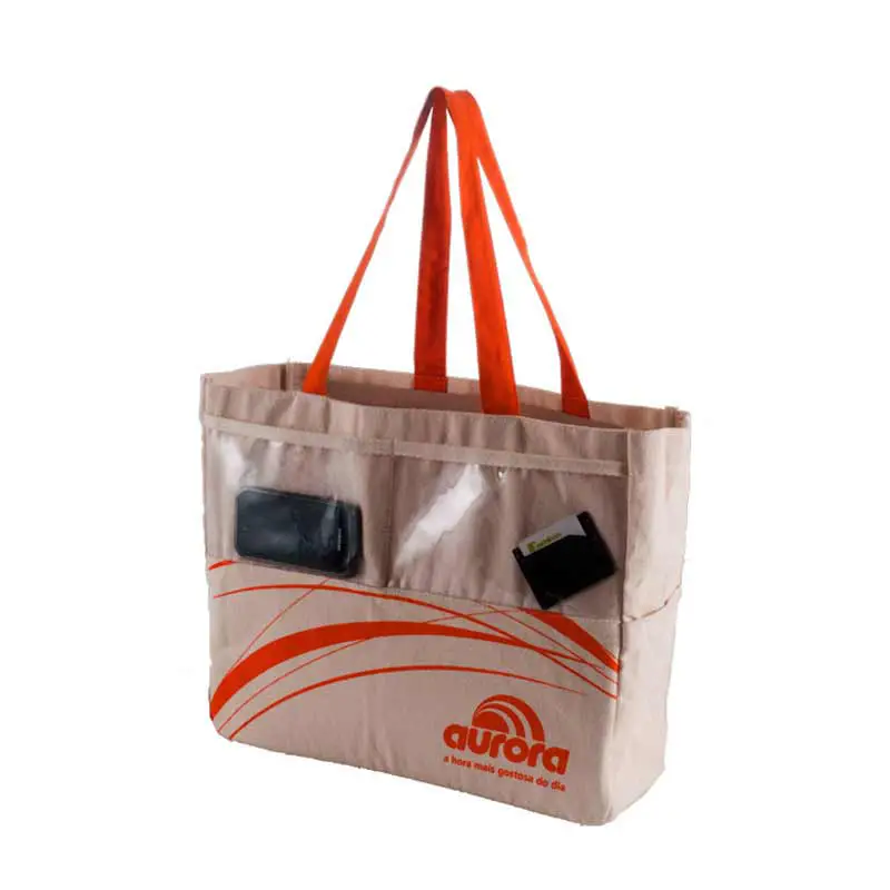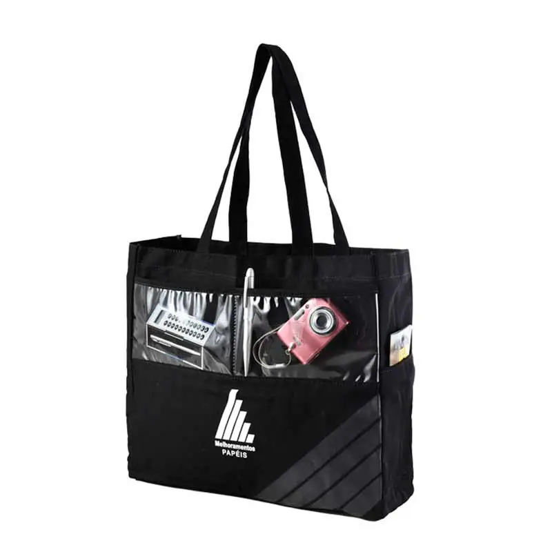 Sacola Evento, Confeccionada em Lonita, Bolso em PVC Cristal e na Lateral, Formato 43X35X15 cm