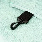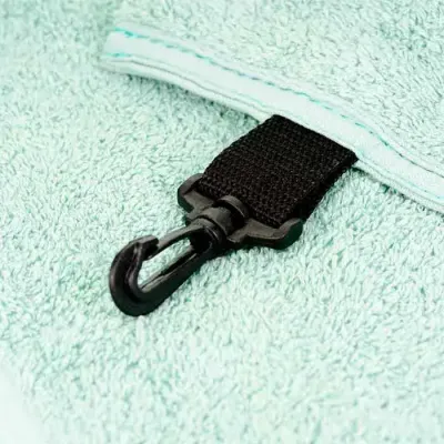 Toalha de golfe, ideal pra limpeza de taco e bolinha, 100% algodão, logo bordado, mosquetão pra prender na cintura, formato aberto: 50x80cm, costurada 18x80cm.