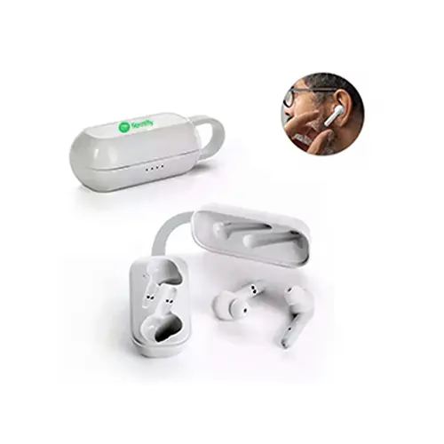 Fone Auricular Airpod Plug Wireless stereo em ABS com transmissão por bluetooth 5.0 e tempo de reprodução de até 3 horas, o estojo de carregamento, com uma bateria de 250 mAh em ABS, contém uma presilha de silicone que permite transportar os fones de forma fácil e cômoda, vem acompanhado de cabo de carregamento micro USB.