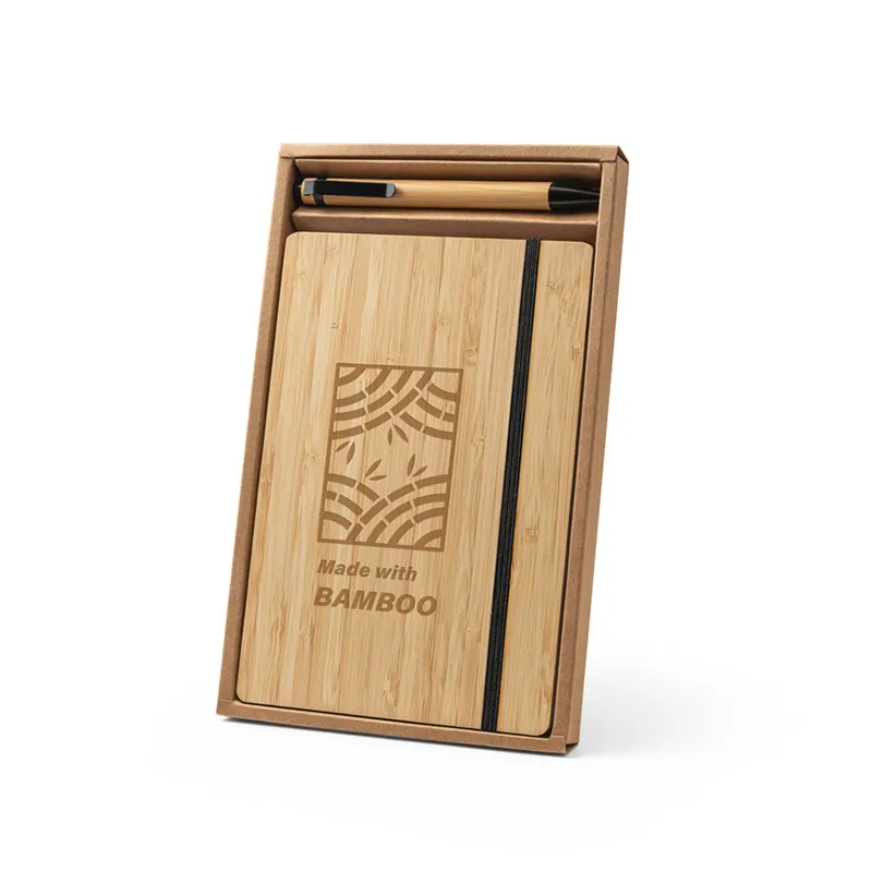 CONJUNTO DE CADERNO A5 E ESFEROGRÁFICA EM BAMBU