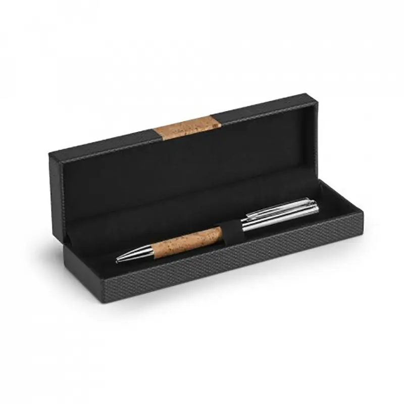 Esferográfica em cortiça e metal inspirada no sobreiro. Esferográfica com mecanismo twist e clipe. Escrita a azul. Fornecida em estojo de oferta com detalhe em cortiça. ø11 x 137 mm | Estojo: 180 x 56 x 30 mm