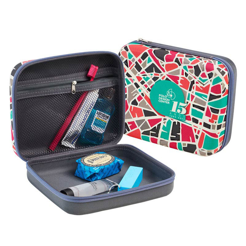 Necessaire termomoldado com fechamento feito por zíper e acabamento interno impecável. Excelente brinde personalizado para um público viajante que gosta de guardar sabonetes, pasta de dente, shampoos e demais itens em necessairies que são compactas, mas com grande capacidade de armazenamento.