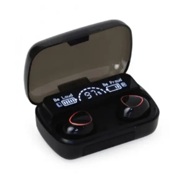 Fone de ouvido bluetooth com comandos touch e case carregador. Com display de bateria e fechamento magnético, o case pode ser utilizado também como um power bank de baixa capacidade para emergências . Material plástico. Acompanham 2 pares de eartips em diferentes tamanhos e cabo USB.