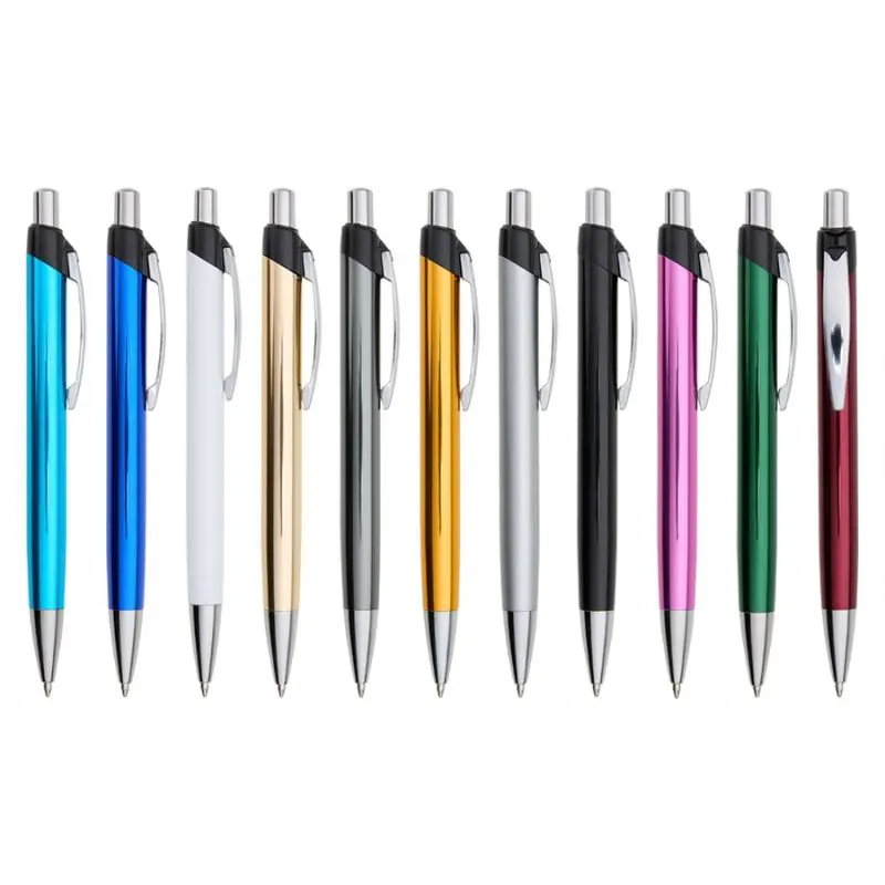 Caneta metálica com acionamento por clique, carga esferográfica azul 1,0mm.