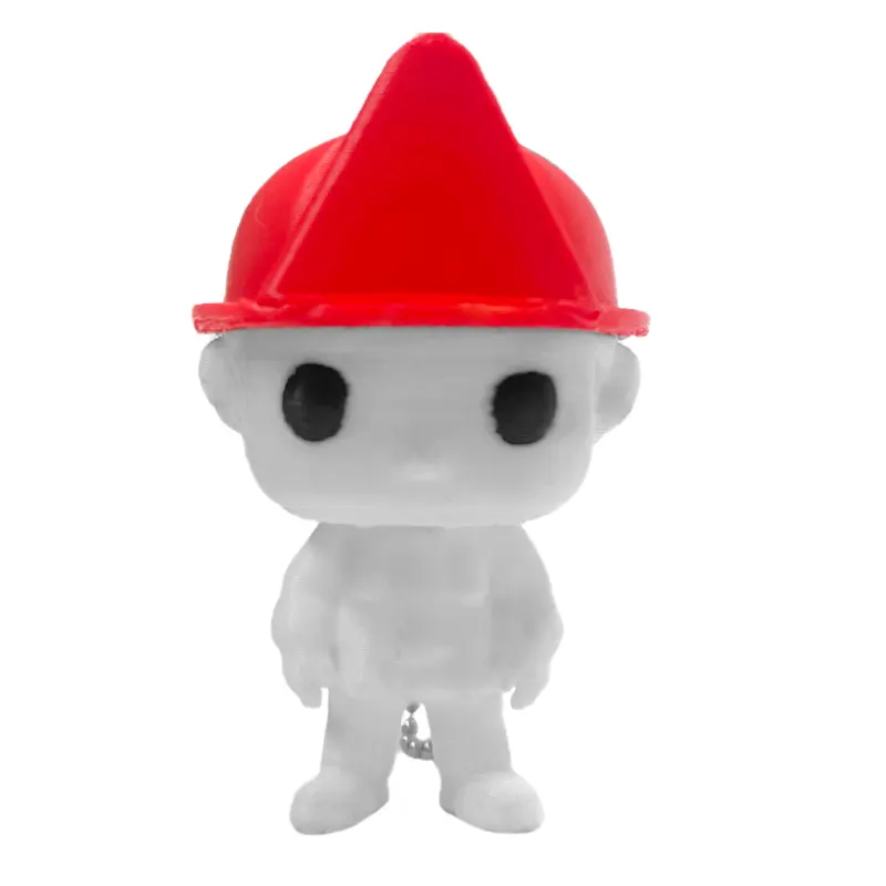 Chaveiro em formato de boneco, impresso em PLA, feito em impressora 3D.