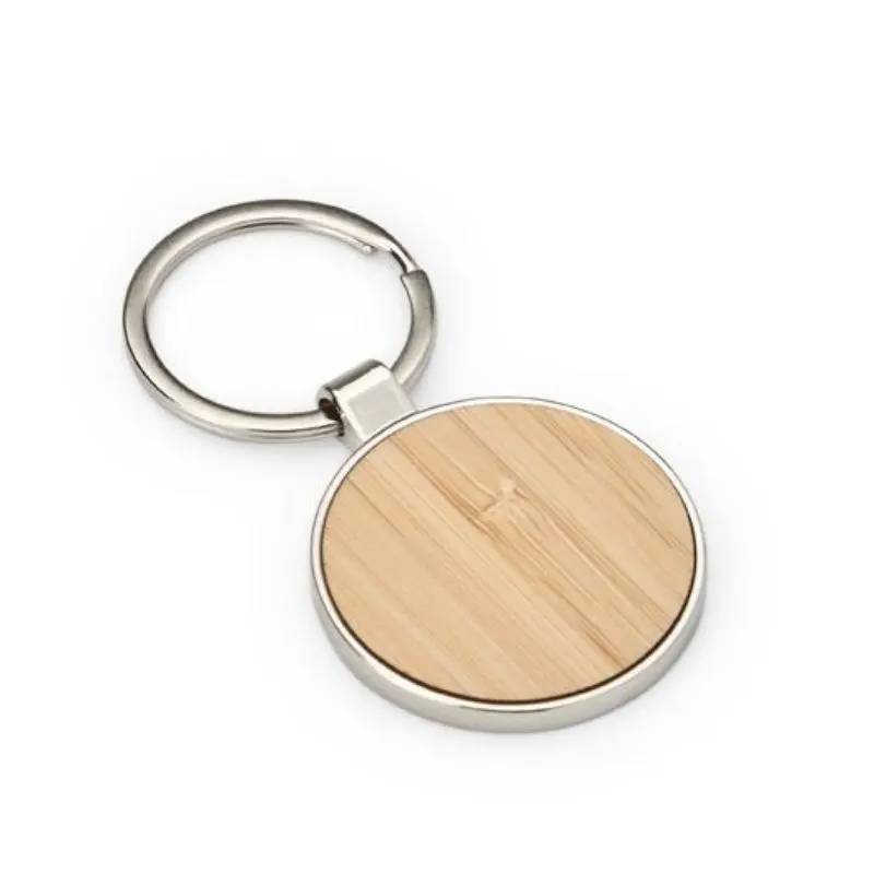 Este é um chaveiro arredondado com estilo minimalista e despojado. Feito em metal e com detalhe frontal em bambu, é uma opção excelente para organizar chaves ou usar como um objeto decorativo.