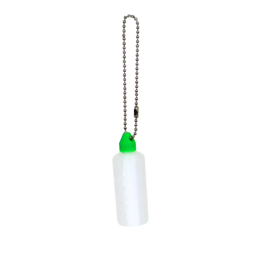 Chaveiro em formato de soro fisiológico, impresso em PLA, feito em impressora 3D.