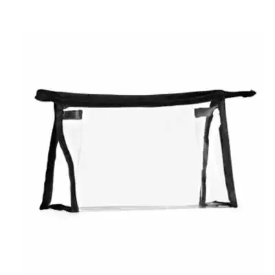 Necessaire plástica transparente com detalhe colorido em nylon.
