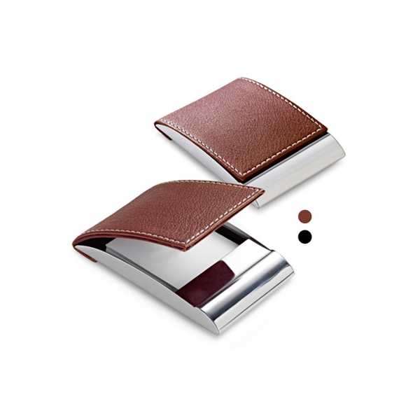 Porta cartão de visita para brindes. Proteja seus com esse elegante brinde. Feito de metal com detalhes em couro, ótimo acabamento e bom espaço para promover e divulgar a sua marca