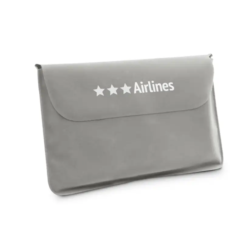 Almofada ou Travesseiro Inflável em material plástico PVC Pneumático 020, no modelo feijão, nas medidas: 30 x 22 cm. Serve também como descanso para o pescoço. Um brinde para levar sua marca mais longe.