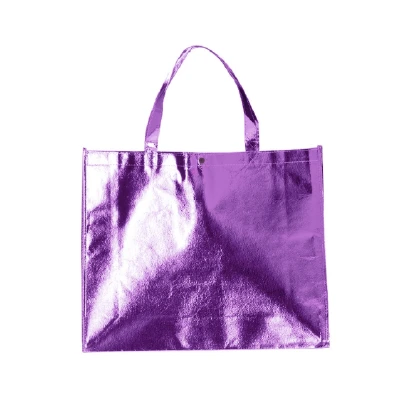 Sacola TNT metalizada 120g/m² com botão. Confeccionado em TNT com revestimento laminado, parte superior possui botão plástico para fecho.