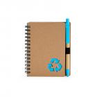 Caderno ecológico com caneta é uma excelente opção de brinde corporativo sustentável, ideal para quem busca praticidade sem abrir mão do compromisso com o meio ambiente. Com capa em papelão e detalhe vazado que remete ao símbolo da reciclagem, ele transmite uma mensagem clara de responsabilidade ambiental. Possui encadernação Wire-O e cerca de 70 folhas pautadas brancas, perfeitas para anotações em reuniões, eventos ou no dia a dia em movimento. Acompanha uma caneta esferográfica azul (1,0 mm) com corpo em papelão, clip e ponteira em plástico, com acionamento por clique. O elástico na capa mantém a caneta sempre acoplada ao caderno, garantindo praticidade e organização. Uma escolha funcional e consciente para destacar sua marca. Entregamos em todo o Brasil.
