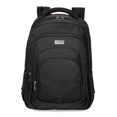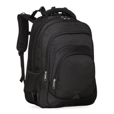 Mochila em poliéster com detalhes em nylon. Com amplo espaço, possui compartimento grande com bolso para notebook, compartimento mediano com divisórias para documentos, canetas, eletrônicos e entre outros; compartimento frontal e bolsos laterais em malha. Contém duas alças de mãos, sendo uma de nylon e outra com acabamento de poliéster revestido com espuma. Alças para costa com possibilidade de ajuste: superior, peitoral e inferior. Zíperes prata, detalhe triangular emborrachado na área frontal inferior, parte traseira com revestimento anti-transpirante e alça horizontal para encaixe em malas de viagem. Acompanha plaquinha metálica para personalização.
