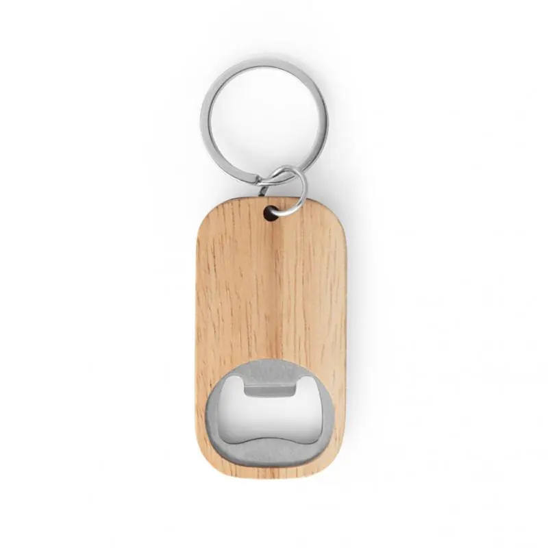 Chaveiro em aço inox e bambu com abridor de garrafas.