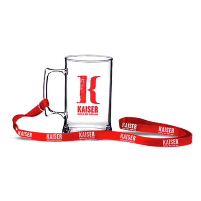 Cordão fabricado em poliéster acetinado com acabamento em pêra – formato transversal, com medidas: 140 x 2cm – gravação digital frente e verso.