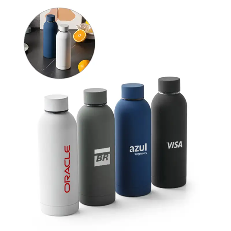 Squeeze Em Aço Inox Com Acabamento Em Borracha, Parede Dupla Isolada A Vácuo E Capacidade Até 550 Ml