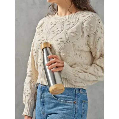 BROMELL 550. GARRAFA EM AÇO INOX (90% RECICLADO) COM TAMPA EM BAMBU 550 ML