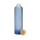 Garrafa de vidro borossilicato com capacidade de 1 litro. Contém tampa de bambu e base de silicone anti-impacto (removível).