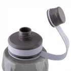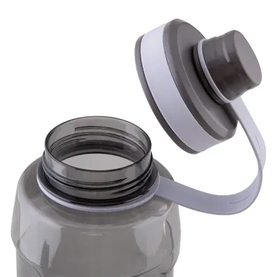 Garrafa plástica com capacidade 1.500ml. Alça de mão plástica, tampa rosqueável com anel de silicone para vedação e bico rosqueável para acesso rapido.