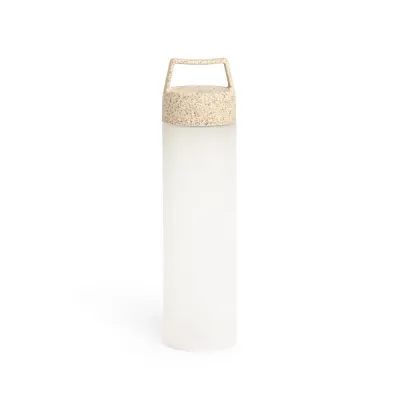Garrafa plastica com capacidade de 650 ml, com tampa de fibra de arroz rosqueável e alça.