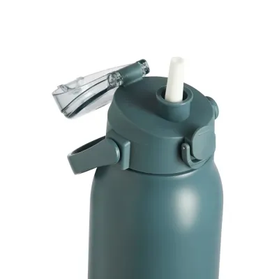 Garrafa Térmica com parede dupla, capacidade de 1 Litro. Tampa com trava de segurança, botão de acionamento e tampa de proteção para o bocal. Com alça para transporte, acompanha um canudo e dois acessórios de extensão de canudo.