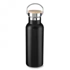 Garrafa térmica em aço inox com parede dupla isolada a vácuo, com capacidade de até 500ml. Conserva líquido quente por até 8 horas e líquido frio até 12 horas. Tampa com revestimento em fibra de bambu. Alça em metal. Detalhe cromado. Pintura fosca. Dimensão Produto: 22xø7,2cm Peso do Produto: 0,320kg Embalagem: Caixa Branca Quant. por Caixa: 50pcs Dimensão Caixa: 39,5x39,5x48cm Peso da Caixa: 17 kg