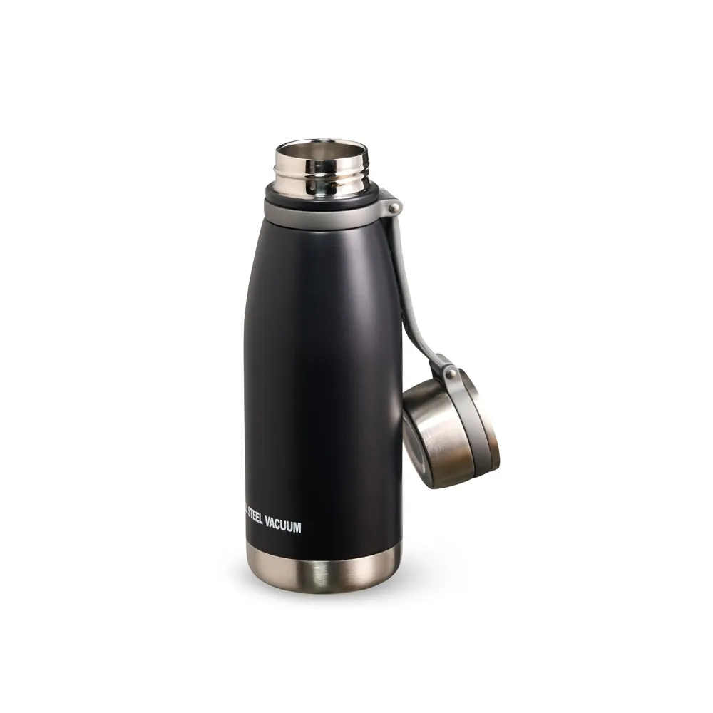 Garrafa térmica com infusor de bebidas, feita em inox 316 com capacidade de 650ml e alça de silicone acoplada na tampa.