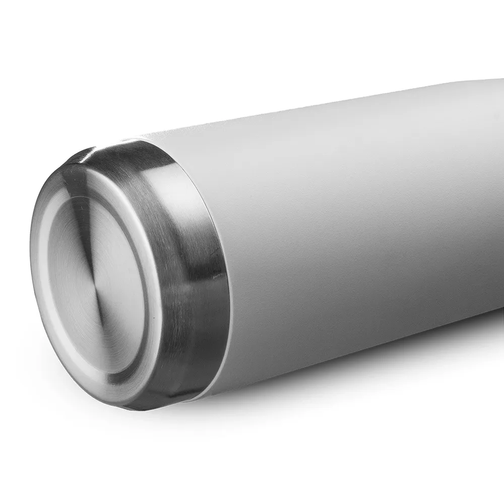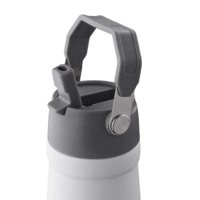 Garrafa térmica em aço inox com parede dupla, com capacidade de até 650ml. Tampa em plástico, com alça para transporte.  Dimensão Produto: 24xø7,4cm Peso do produto: 0,350kg Embalagem: Caixa papelão branca Quant. por Caixa: 25pcs Dimensão Caixa: 50x45x26cm Peso da Caixa: 12kg