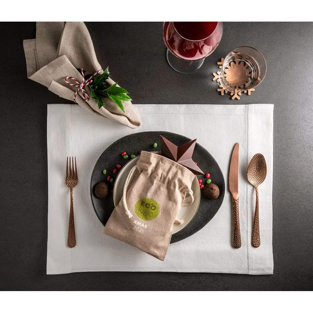 Sacola em algodão reciclado (140 g/m²) com cordão em algodão. Sacola reutilizável ideal para pequenos presentes. 140 x 200 mm