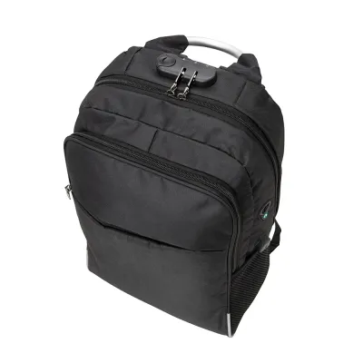 Mochila p/ Notebook em tecido poliéster. Parte externa: Fechamento por cadeado com senha; Alça de mão em metal; Alça de ombro acolchoada; 2 bolsos frontais; 2 bolsos laterais; Mini bolso na alça de ombro; Conector USB na lateral; Saída para fones de ouvido na lateral. Parte interna: Compartimento para notebook de 30x27cm, Tamanho total do Notebook - 16,5¨ Dimensão do Produto:13x29x43cm Peso do Produto:0,533kg Quant. por Caixa:15pçs Embalagem:Saco Plástico Dimensão da Caixa:53x31x47 Peso da Caixa:8,2Kgs