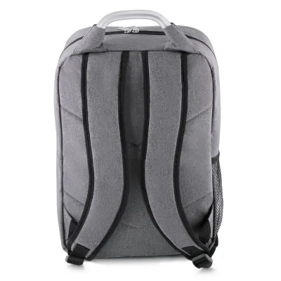 Mochila p/ notebook em tecido poliéster 300D e interior em 190T.\r\n\r\nParte externa:\r\nAlça de mão em haste de metal.\r\nAlça de ombro acolchoada.\r\nBolso lateral em malha.\r\nDois bolsos frontais com ziper.\r\n\r\nParte interna:\r\nCompartimento acolchoado p/ notebook, 45x29cm.\r\nTamanho total do Notebook - 15,6¨