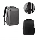 Mochila para notebook em 300D com 1 compartimento principal com 2 bolsos forrados para computador 15.6" e tablet 10.5" e diversos bolsos interiores. Incluso banda para transporte em trolley, bolso frontal, bolso lateral e entradas USB e Jack 3.5mm. Parte posterior e alças são almofadadas. 320 x 410 x 120 mm