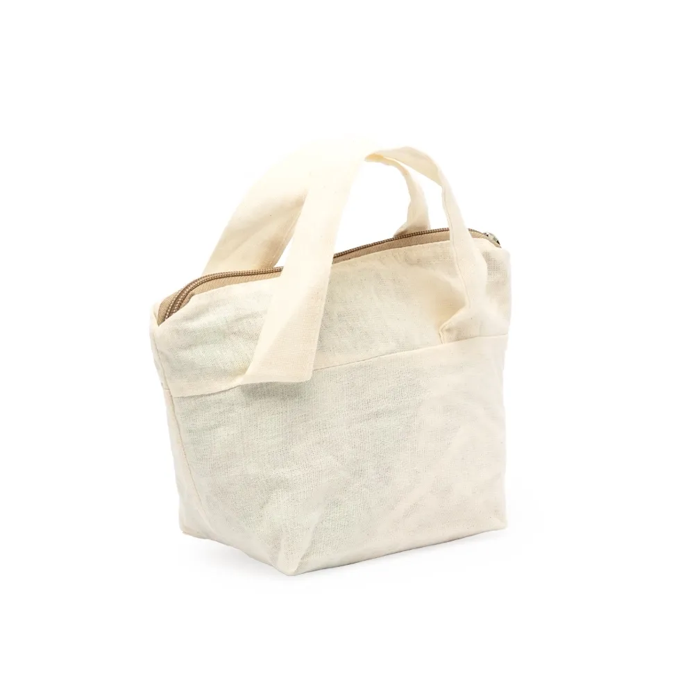 Nécessaire de algodão com zíper, alças e frente e verso lisos.