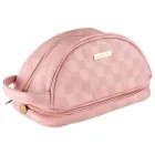 Um acessório sofisticado e versátil para itens essenciais de beleza e cuidadoi! Feita em couro sintético PU de alta qualidade, esta nécessaire combina elegância e funcionalidade com um design moderno e detalhes em padrão xadrez. Perfeita para organizar maquiagens e produtos de higiene, ela é à prova dágua e possui zíperes individuais para fechar os compartimentos superior e inferior com segurança. Além disso, sua alça prática facilita o transporte, tornando-a ideal para o dia a dia ou viagens.