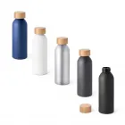 Squeeze de alumínio com acabamento mate e tampa em bambu. Capacidade até 550 mL. Certificação EU Food Grade. Caixa branca 94656 vendida opcionalmente. ø65 x 197 mm