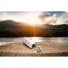 Garrafa em aço inox com parede dupla isolada a vácuo, tampa em bambu e alça de transporte em aço inox (térmico). Capacidade até 570 mL. Certificação EU Food Grade. Preserva as bebidas quentes por 8h e frias por 24h. Fornecida em caixa presente de papel kraft. ø70 x 220 mm | Caixa: 75 x 227 x 75 mm