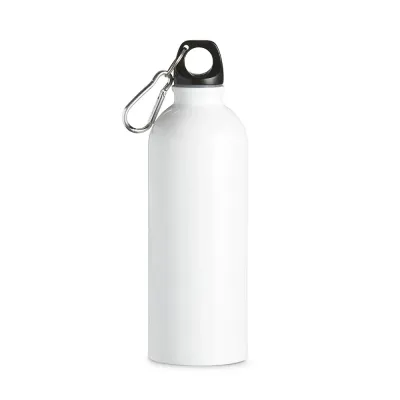 Squeeze 500ml de inox com pintura metalizada, tampa rosqueável e acompanha um segundo bico com mosquetão (não é térmico).