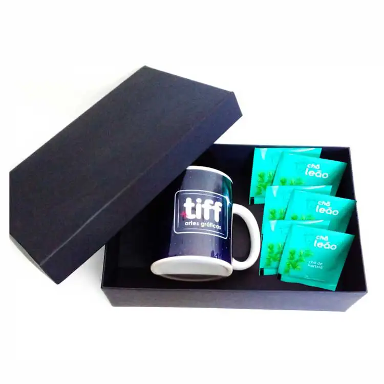 01 Caneca de Cerâmica de 330ml Personalizada e 06 sachês de chá nacional - sabores diversos