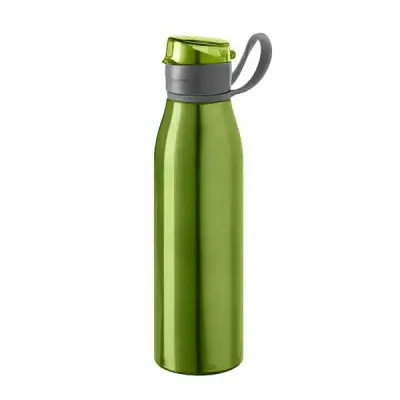 Squeeze em Alumínio com capacidade de 650 ml com alça emborrachada para segurar e tampa. Personalização sugerida: Laser ou Silkscreen.