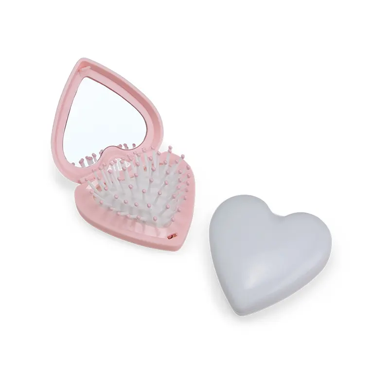 Escova com espelho em formato coração. Funcional, a escova com espelho é ideal para quem busca praticidade no dia a dia. Compacta, é feita em plástico e possui abertura vertical, liberando as cerdas ao pressionar o verso.