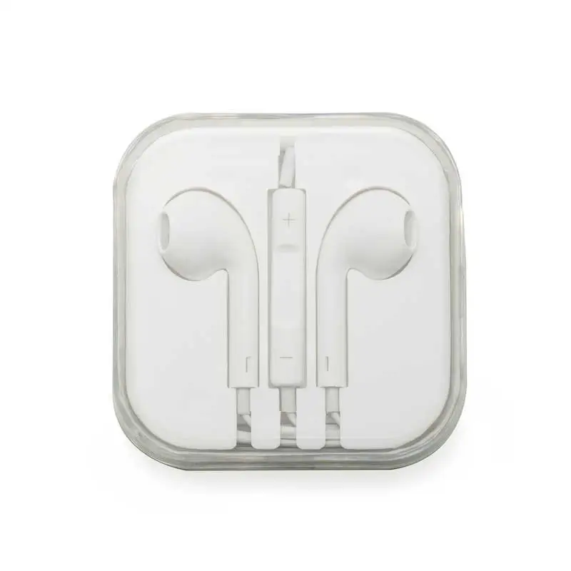 Fone de ouvido para brinde, com microfone (branco), acompanha embalagem plástica com tampa acrílica transparente personalizada com uma cor de gravação.