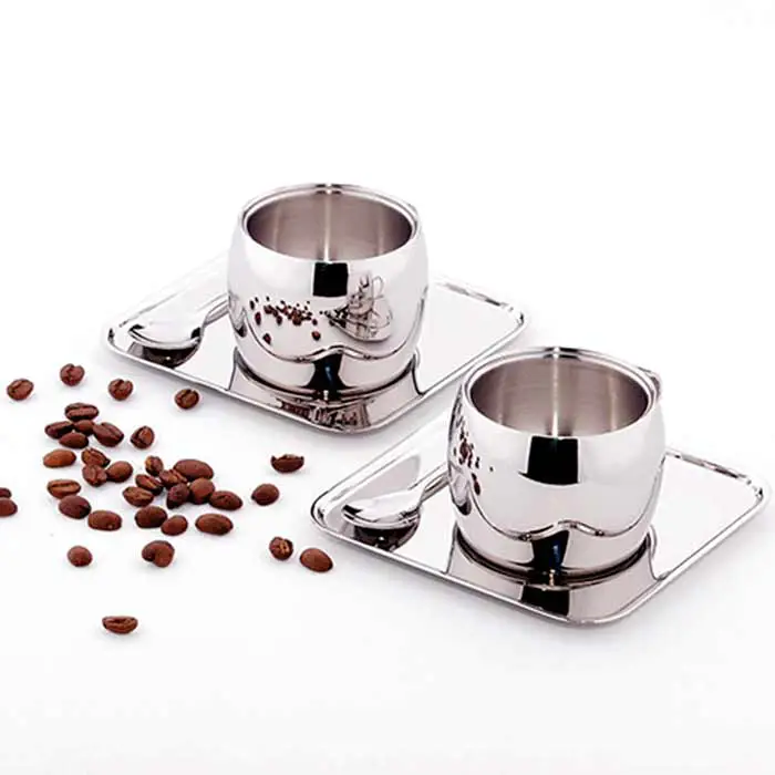 Kit para Café Tramontina em Aço Inox Acabamento Brilho com Xícara Pires Quadrado e Colher 18 Peças