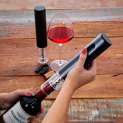 Painel com iluminação LED e botões para extração e remoção de rolhas.