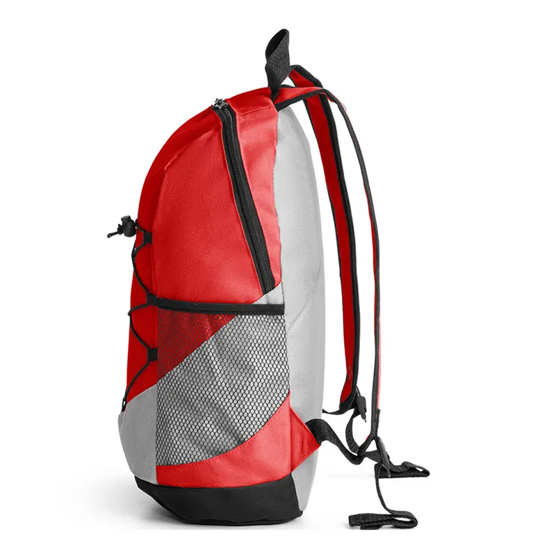 Mochila confeccionada em tecido resistente modelo seiscentos D com compartimentos laterais em tela respirável e bolso interno para organização. Possui parte posterior e alças acolchoadas para maior conforto durante o uso. Capacidade de até quinze litros.