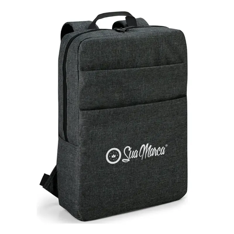 Mochila para notebook personalizada em material resistente 600D de alta densidade garantindo durabilidade e estilo. Possui compartimento principal espaçoso com divisória almofadada para notebook de até 15,6 polegadas proporcionando segurança extra para seu dispositivo. Interior totalmente forrado e almofadado para maior proteção. Conta com dois bolsos frontais ideais para organização de acessórios além de alças e parte posterior almofadadas oferecendo conforto máximo no uso diário. Design moderno e funcional com capacidade de até 10 litros perfeita para trabalho estudos e viagens. Dimensões 295 x 390 x 100 mm